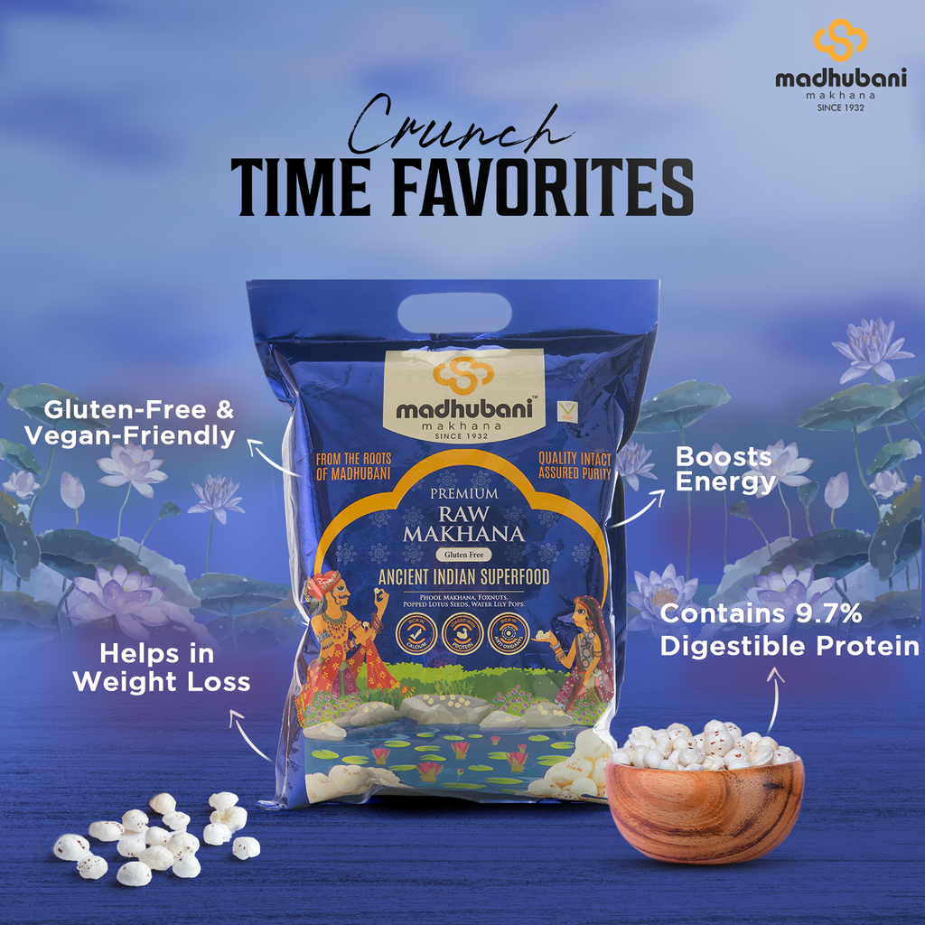 BLUE - Madhubani Makhana | Premium Raw Plain Phool Makhana | Medium to Large Size